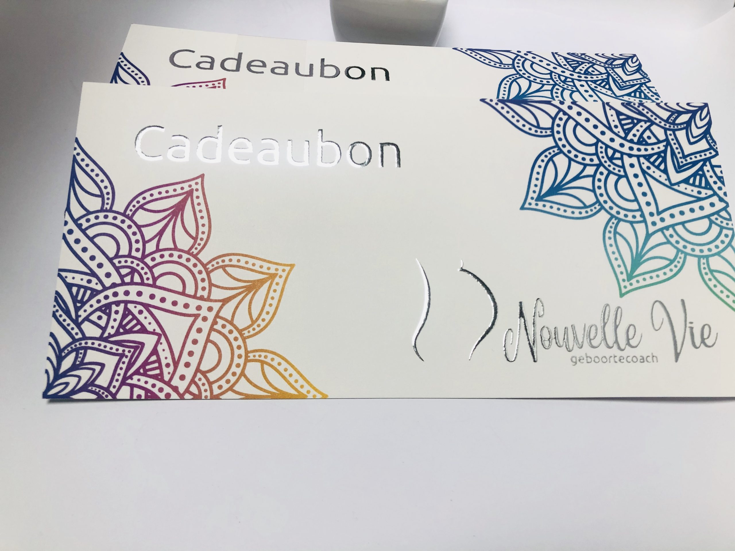 Hieronder is een van de cadeaubonnen die ik heb ontworpen en laten bedrukken. Het is altijd weer zo een traktatie als ik voor een klant een leuke opdracht mag uitvoeren.